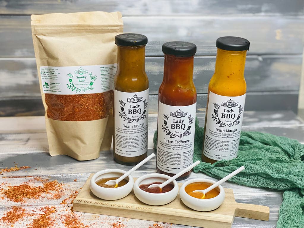 Drei unfassbar leckere BBQ-Saucen bietet Edelschmaus exklusiv im Juli an. Das Team Ladys BBQ wird die Herzen aller Grillfans im Sturm erobern.