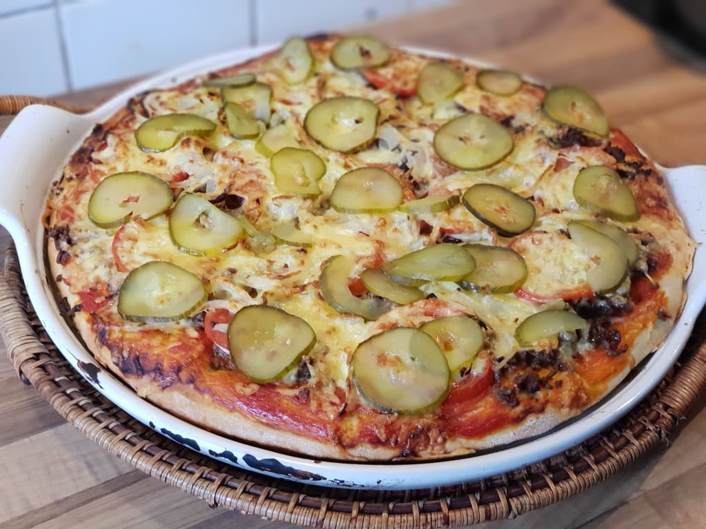 Die Gurkenscheiben verteilen und für weitere 5 Min Backen lassen.