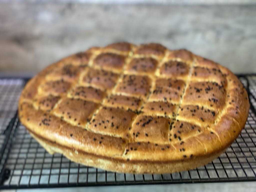 Das Fladenbrot aus der Pfanne holen und genießen.