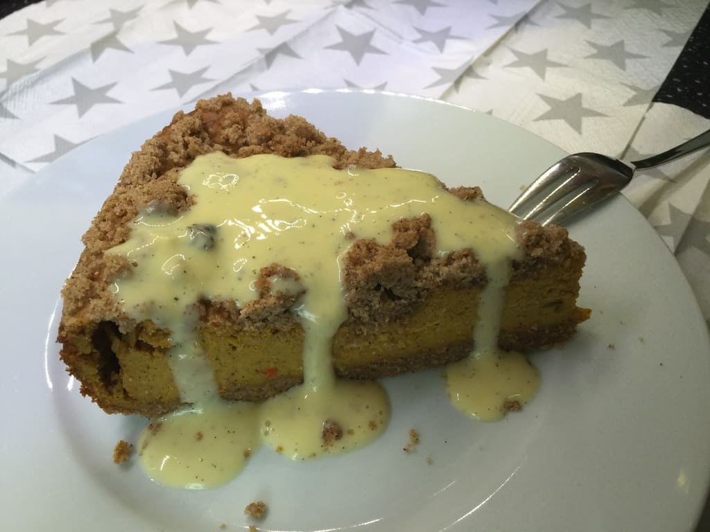 Am aller Besten lässt sich dieser Kuchen mit einer selbstgemachten Vanillesauce genießen.