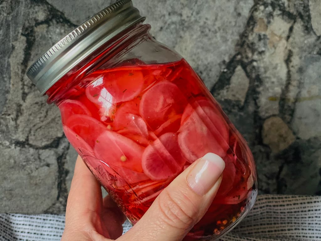 Ihr Lieben, diese kleinen Radieschen haben es mir richtig angetan. Sie sind auch eingelegt super knackig und lecker. Kann ich Euch nur empfehlen.
